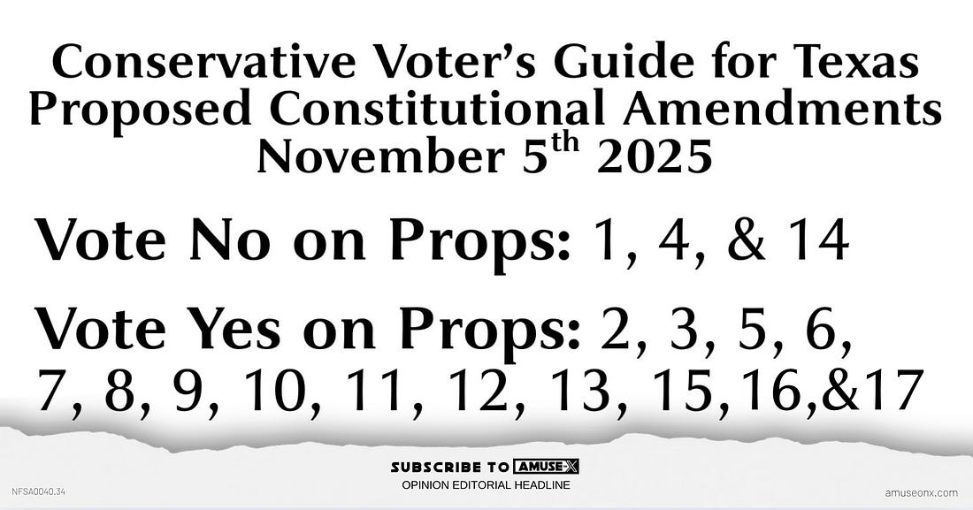 Subject: November 4, 2025: How Conservatives Should Vote on Texas’ 17 Ballot Propositions